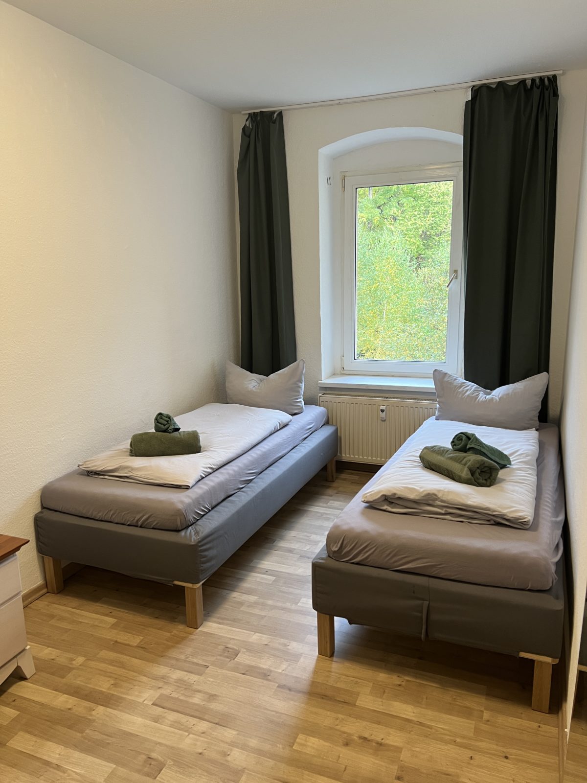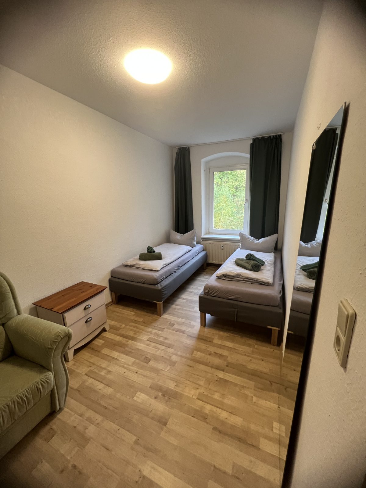 Die Monteurwohnung Chemnitz ist eine Unterkunft für max. 2 Personen und befindet sich im 2.Stock. In dem Apartment in Chemnitz Furth finden Sie eine voll ausgestattete Küche vor, inklusive Wasserkocher, Toaster, Kaffeemaschine, Mikrowelle, Besteck, Töpfen und Waschmaschine. Ebenfalls steht Ihnen ein Bad mit Dusche zur Verfügung. Die Wohnung hat WLAN im gesamten Wohnungsbereich. Die Monteurwohnung hat 2 Einzelbetten im Schlafzimmer, die wahlweise auch zu einem Doppelbett zusammengestellt werden können.